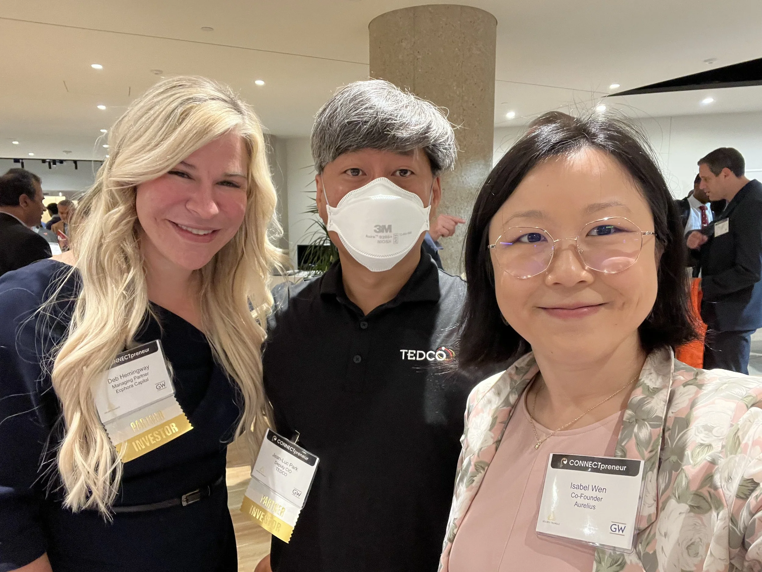 Connectpreneur September in DC at International Square — Deborah Hemingway, Ecphora Capital (left), Jean-Luc Park, TEDCO (center), Isabel Wen, Aurelius (right)