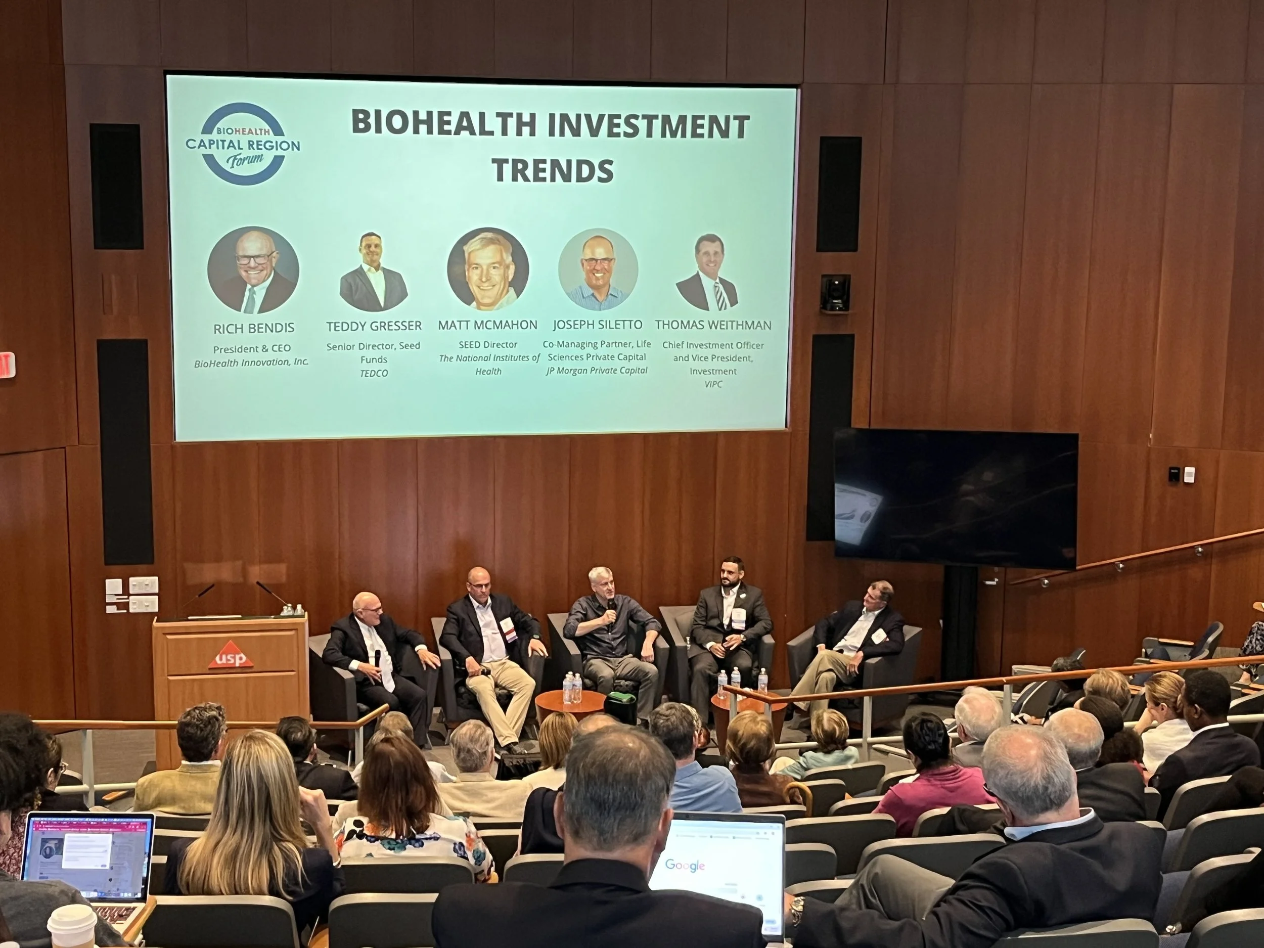 Attended a panel discussion on the latest Biohealth Investment Trends, which included local investors and the SEED Director for NIH, which oversees SBIR/STTR at NIH.