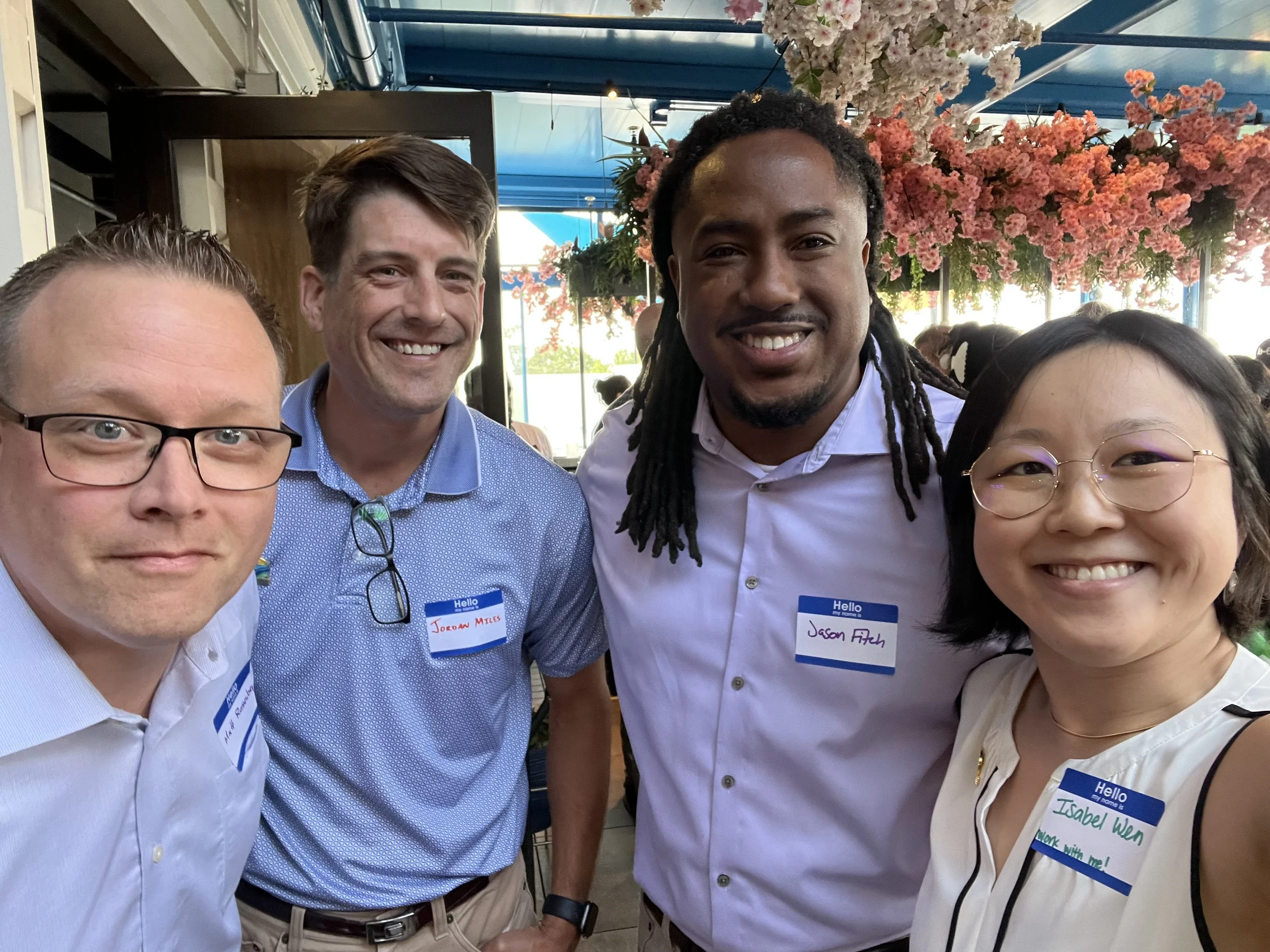 Connectpreneur Connectails Networking in July in Arlington, VA — From Left to Right: Matthew (Better Flip), Jordan Miles (Aurelius), Jason Fitch (Better Flip), Isabel Wen (Aurelius)